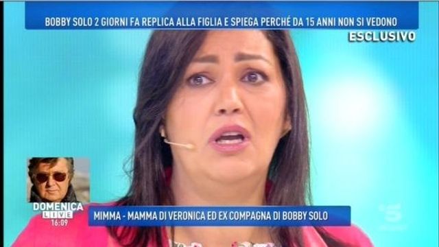 Continua la freddezza tra Bobby Solo e la figlia Veronica Satti che piange disperata nella casa del Grande Fratello per suo padre che di lei proprio sembra non volerne sapere. A Domenica Live arriva in difesa della nuova gieffina la mamma Mimma Foti che dice la sua sulla già nota rottura famigliare tra il cantante e Veronica: “Tutto quello che ha detto ai giornali nei confronti di nostra figlia lo trovo vergognoso, concordo con Malgioglio, lui non fa una bella figura”. La mamma di Veronica poi aggiunge: “Si facesse consigliare meglio perché un abbraccio non costa nulla”. Barbara D’Urso però lancia uno spiraglio di speranza: “Lunedì al Grande fratello potrebbero esserci delle novità”.