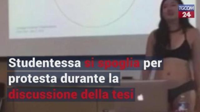 Un abbigliamento non proprio convenzionale quello scelto da Letitia Chai, una studentessa della Cornell University (nello stato di New York), per la discussione della sua tesi di laurea: reggiseno e mutande. La ragazza si è spogliata durante la presentazione del lavoro in segno di protesta contro una professoressa che, nel corso delle prove della discussione, le aveva detto: "È questo quello che indosserai? Sul serio? I tuoi shorts sono troppo corti". Letitia si era infatti presentata con degli shorts, gli stessi poi utilizzati - e tolti - il giorno effettivo della laurea. Secondo l’insegnante, i pantaloncini avrebbero distolto l’attenzione dalla sua presentazione.