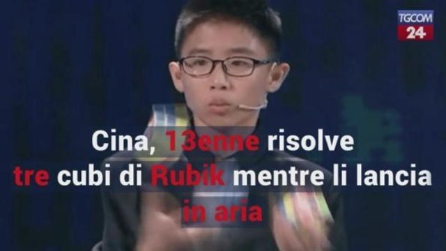 Que Jianyu è un ragazzo cinese di soli 13 anni, eppure ha già stabilito un record mondiale. Il giovane infatti è riuscito a risolvere tre cubi di Rubik mentre li lanciava in aria, in soli cinque minuti e sei secondi, lasciando il pubblico senza parole.