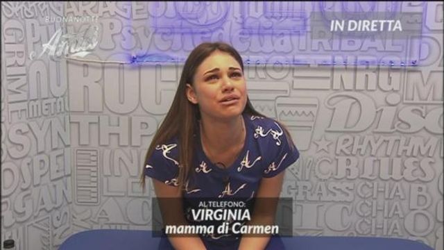 "Ciao amore": sono bastate queste due semplici parole per far scoppiare in lacrime Carmen, cantante di "Amici 17". La ragazza non ha saputo trattenere l'emozione quando, dopo il serale, ha ricevuto la telefonata a sorpresa da parte della propria madre. Singhiozzando la concorrente ascolta la voce della mamma che incoraggiandola le dice: "Stai realizzando un sogno. Fai tesoro di ogni critica: prendila come un modo per crescere, sia come persona che come artista. Qui siamo tutti fieri di te". Parole preziose che infondono forza e coraggio a chi da tanto tempo è lontano da casa e dalla propria famiglia.
