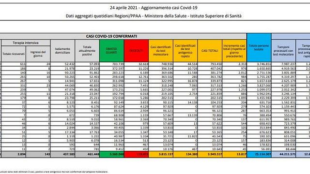 Nelle ultime 24 ore l'Italia ha registrato 13.817 nuovi casi di coronavirus a fronte di 320.780 tamponi (venerdì erano stati 14.761 con 315.700 test). Lo rileva il ministero della Salute, secondo cui i decessi sono stati 322 (contro i 342 del giorno precedente). I dimessi/guariti sono stati 17.587 mentre continua il calo degli ingressi in ospedale e in terapie intensiva. L'indice di positività si attesta al 4,3%, in calo rispetto a ieri.
