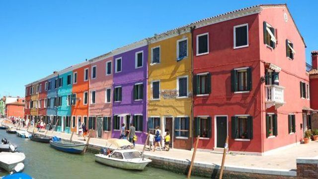 Burano sorge su quattro piccole isole, collegate tra loro da graziosi ponticelli e attraversata da vicoli e calli. Ovunque l’occhio si posi è un’esplosione di colore, come se l’estro di un gruppo di bambini fantasiosi armati di vernici e pennelli fosse sfuggito al controllo dei genitori e avesse dato libero sfogo alla fantasia. L’abitudine di dipingere le case di colori così sgargianti sembra invece essere dovuta a uno scopo pratico. La nebbia è molto densa e frequente in laguna: il fatto di poter contare su colori diversi e intensi era un aiuto e una guida per i pescatori che rientravano a casa dal mare e stentavano a orientarsi in condizioni di poca visibilità.