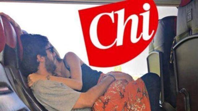 La ex reginetta di bellezza, gonna lunga a fiori e sneakers ai piedi, è avvinghiata a Nicolò, appollaiata sulle sue gambe. Lui seduto sulla poltrona del treno Milano-Roma la stringe tra le braccia con grande trasporto ma anche naturalezza.