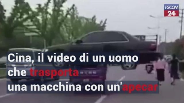 Nella provincia di Zhejiang in Cina un incauto guidatore ha voluto trasportare sopra la propria apecar un’auto. L'uomo aveva acquistato la vettura usata ad un prezzo molto basso, circa 106 euro, e voleva guadagnare qualche soldo extra vendendone i pezzi. Il trasporto dell'auto, però, era molto costoso e così ha deciso di improvvisare utilizzandola propria apecar. La manovra, però, ha attirato l'attenzione della polizia che, dopo averlo rintracciato, gli ha fatto una multa di 172 euro e tolto nove punti dalla patente. Alla fine la sua idea gli è costata cara.