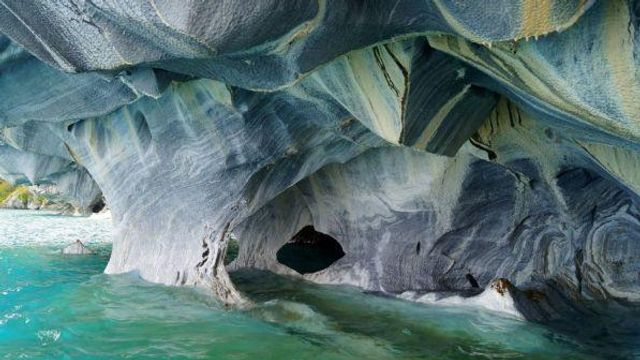 7 CATEDRAL DE MARMO - CILE - E’ una spettacolare formazione minerale di carbonato di calcio, situata lungo la costa del Lago Buenos Aires/General Carrera, in Cile. La grotta si è formata oltre 6.000 anni fa dalla lenta erosione delle onde del lago sulle pareti di marmo. Le volte riflettono il colore azzurro intenso dell'acqua e cambiano colore a seconda del suo livello e delle stagioni.