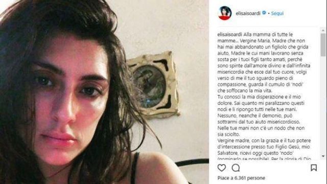 Svolta mistica, coppia in crisi o difficoltà da risolvere? Quale sia il “nodo da sciogliere” di Elisa Isoardi ancora non si sa, ma la conduttrice tv, compagna del ministro dell'Interno Matteo Salvini, ha pubblicato un post con una preghiera a “Maria che scioglie i nodi” che sta facendo il giro del web. Ad accompagnare l'orazione un primo piano di Elisa preoccupata e pensierosa.