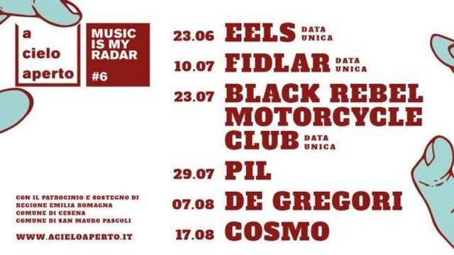 Torna anche nel 2018 Acieloaperto Festival, la rassegna musicale in scena a partire dal 23 giugno nella suggestiva cornice storica della Rocca Malatestiana a Cesena. Protagonisti in cartellone i PiL di Johnny Lydon (Sex Pistols) e ben tre date uniche italiane con Eels, Black Rebel Motorcycle Club e Fidlar. Non mancheranno le eccellenze nostrane tra passato e presente come Francesco De Gregori e Cosmo, in scena nella splendida cornice di Villa Torlonia a S.Mauro Pascoli (FC).