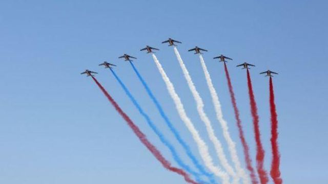 È stato un 14 Luglio pieno di imprevisti quello che è andato in scena a Parigi, sugli Champs-Élysées, davanti agli occhi del presidente francese Emmanuel Macron. Al via della parata militare, infatti, due motociclette della gendarmerie si sono urtate e sono cadute, probabilmente perché uno degli agenti ha calcolato male il momento dell'ingresso a Place de la Concorde. Nel finale, poi, c'è stato un problema tecnico nei fumogeni della pattuglia aerea acrobatica che ha così riprodotto in cielo un tricolore francese dai colori sbagliati. Immancabili i seguiti ironici sui social: "È stata la Croazia?"