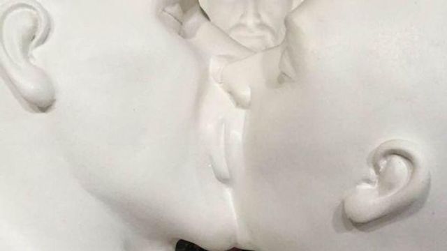 Giannelli, che da anni vive a Pietrasanta, spiega che "è un lavoro di due o tre anni fa, dedicato al bacio come emozione primaria dell'essere umano, che scaturisce tutta una serie di reazioni chimiche". Per lui "il bacio è un gesto d'amore, che venga fatto tra due persone di qualsiasi sesso. Non mi interessava l'omosessualità, anche se c'è logicamente", conclude l'artista che ricorda il bacio di Rodin o di Klimt.