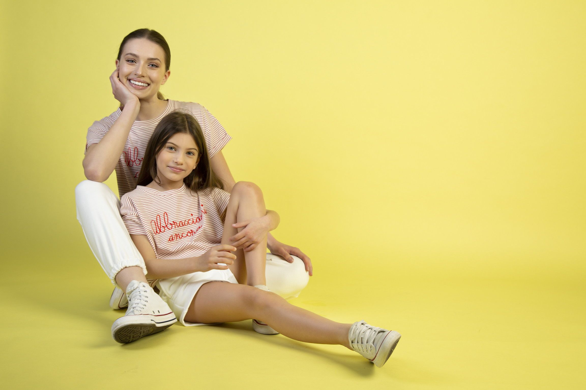 UN ELOGIO ALLA TENEREZZA E ALL’AMORE - “Abbracciami Ancora”, “Stringimi Forte” e “Viva la Mamma” sono le frasi ricamate sulle t-shirt “parlanti”. La collezione “Mini Me” si compone anche di jogger e bermuda in felpa. Un incontro tra capi romantici e comodi per un look coordinato che vuole conquistare il cuore delle mamme e delle loro figlie.