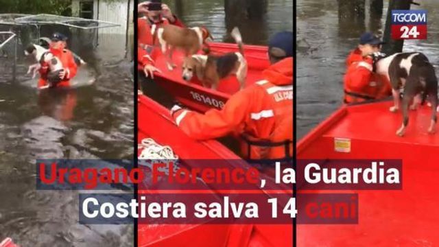 La Guardia Costiera americana è impegnata nelle operazioni di recupero necessarie dopo che l’uragano Florence ha colpito la costa est degli Stati Uniti. Molti gli interventi e le squadre di soccorso attive sul territorio, tra queste ce n’è anche una dedicata solo al recupero degli animali. In North Carolina, sono stati salvati ben 14 cani in una volta sola. Il tempismo della squadra di soccorso ha evitato agli animali infreddoliti e impauriti di annegare. Alcuni di loro infatti riuscivano a malapena a rimanere a galla.