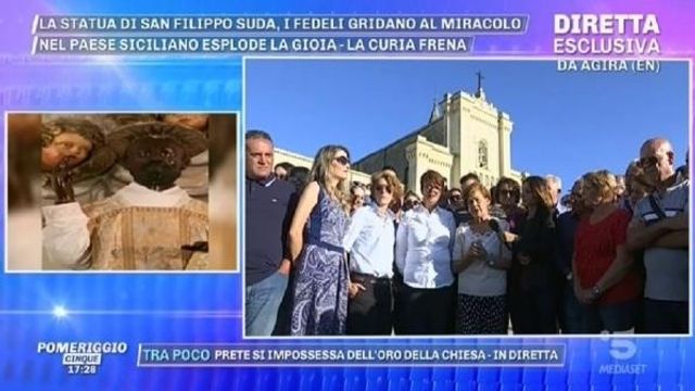 Infatti, la signora Maria a Pomeriggio Cinque racconta: “Ero in chiesa, come faccio tutti i giorni e ad un certo punto mi sono accorta che tutto il viso di San Filippo era bagnato. Mi vengono ancora i brividi se ci ripenso”. Anche il signor Lino ammette di aver assistito a quello che lui stesso definisce un ‘prodigio’: “Giovedì sera verso le 19:30 ho notato una lacrima che rigava il viso di San Filippo dalla fronte, fino alla bocca, passando per il naso della statua”. Ma intanto la Curia frena e non parla ancora di miracolo.