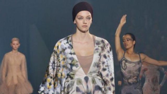 A Parigi in passerella Christian Dior propone top semitrasparenti, abiti in jersey di seta, tulle color cipria e tessuti impalpabili nelle delicate nuance che vanno dal rosa delicato al caldo color miele, dal verde bosco al blu.