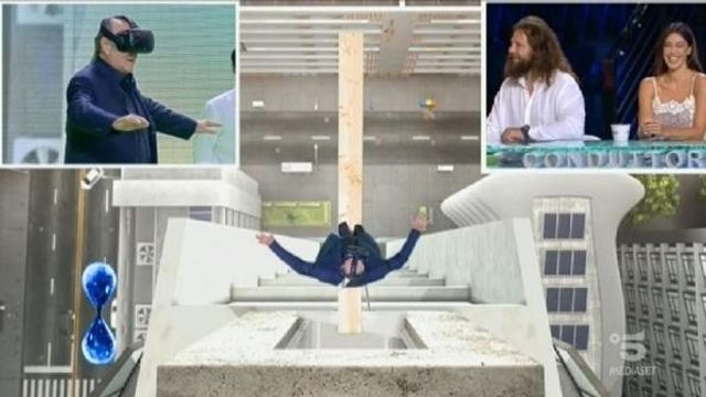 Né cantanti, né bellaerini, né acrobati. Simone Barbato e Lorenzo Di Natale sono due psicologi, che sono saliti sul palco dello studio di Tu Si Que Vales, per far provare una terapia a base di realtà virtuale. Una tecnologia usata spesso nei videogiochi, ma che può essere utilizzata anche per curare paure e fobie. Ed è così che Belen Rodriguez si è ritrovata su una trave nel vuoto, per la precisione posta al centesimo piano di un palazzo. Ma la showgirl argentina non se l’è sentita. Forse ancora scombussolata dalla confessione di qualche minuto prima: “Sì, sono single” ha ammesso a uno dei concorrenti del talent. Al suo posto, un coraggioso Gerry Scotti è riuscito a completare la camminata nel vuoto. Con qualche difficoltà ma ce l’ha fatta.