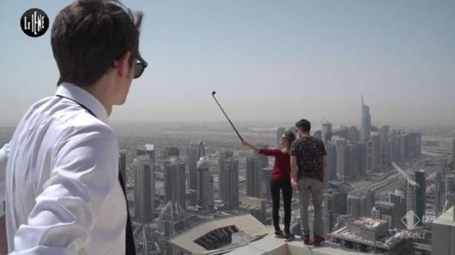 Come questo ci sono molti casi ma il boom si registra in India. Una moda che ha dato l'idea ai due ragazzi per farne un vero e proprio lavoro. I due atleti dell’autoscatto violano continuamente la legge. Eludono la sicurezza dei grattacieli per dirigersi sui tetti, sfidano il pericolo e dicono: "Saliamo anche fino a 60 piani, per noi è come stare a casa sul divano". Per Le Iene, Rovazzi li accompagna a Dubai verso una sfida a 250 metri d'altezza. Le immagini sono da brividi: in piedi su un cornicione con un selfie stick in mano. Loro però precisano: “Noi siamo professionisti. Non imitateci”.