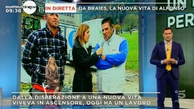 Dall’ascensore alla nuova vita. La storia è quella di Alfonso Giuliano, operaio edile 50enne disoccupato da quattro anni e costretto a dormire in un ascensore vicino alla chiesa Santa Maria della Marca di Castelfiorentino. Una storia che Mattino Cinque aveva fatto conoscere a tutta Italia e che oggi prende una piega diversa. Sì perché Alfonso ha trovato un lavoro come muratore grazie a un imprenditore lucchese, Francesco Di Bello, e soprattutto ha trovato anche un posto dove vivere. In diretta da Braies, luogo dove inizierà a lavorare da giovedì 8 novembre, Alfonso non riesce quasi a trattenere l'emozione: "Sono felicissimo, voglio ringraziare Francesco. Da oggi per me inizia una nuova vita. Darò più del massimo, questa opportunità mi serviva e voglio onorarla".