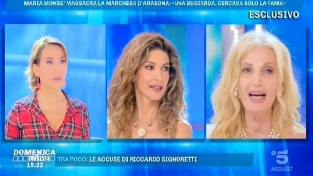 Un confronto molto atteso e finalmente arrivato, quello tra Maria Monsè e Daniela Del Secco. Tra la showgirl e la sedicente Marchesa d’Aragona non corre buon sangue e questa è cosa risaputa, ma dopo l’incontro nella casa del Grande Fratello VIP il livore si è ulteriormente acuito. Tutto per una serata e una carrozza contesa. Maria Monsè, sulla poltrona di Domenica Live, arriva addirittura con un ironico dono per la sua ex amica diventata ormai acerrima rivale: “Questo è un velo, te l’ho regalato così potrai nasconderti ogni volta che dirai una bugia”. La replica della Del Secco: “Queste zanzare continuano a infastidire le mie nobili orecchie” dice mentre lavora a maglia ignorando completamente la sua interlocutrice.