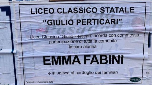 E' il giorno dei funerali di Emma Fabini, la 14enne uccisa dalla calca, insieme ad altri 5 ragazzi e una madre, nella tragedia di Corinaldo. Intorno alla chiesa del "Portone" di Senigallia una folla commossa ha dato l'ultimo saluto alla giovane. Mercoledì, in serata, il magistrato aveva dato l'ok alla restituzione delle salme dopo le autopsie (entro 50 giorni verranno depositate le perizie dei medici).