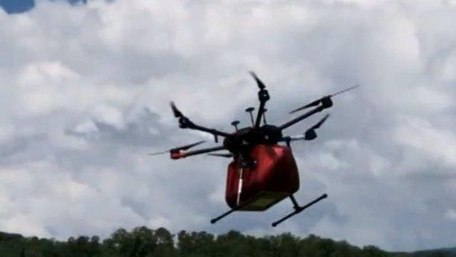 Passenger who's flight was delayed in Gatwick airport videod One of the drones what was cought at Gatwick airport. pic.twitter.com/7V0YJI3Nzb