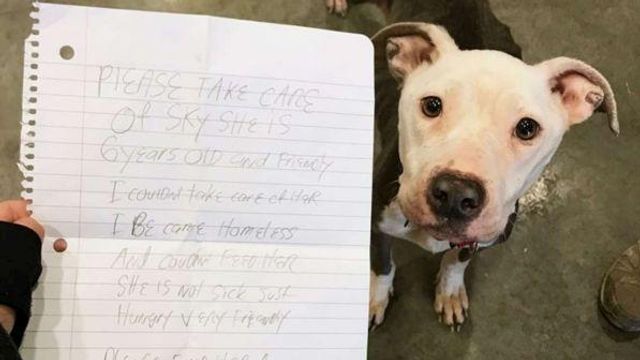 "Per favore, prendetevi cura di Sky. Ha sei anni ed è una cagna molto socievole. Non posso più prendermi cura di lei, non ho più una casa e non posso darle da mangiare". Con questo toccante messaggio, un cittadino americano ha lanciato a malincuore un appello per far adottare la sua cagnolina dopo aver perso tutto. Per non essere costretto ad abbandonarla, il proprietario ha lasciato la cagnolina davanti alla sede di un'associazione animalista, la quale ha postato le foto dell'animale visibilmente denutrito: "Non è malata, ha solo tanta fame. Per favore, datele una casa".