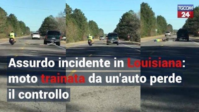 Ha dell'incredibile quanto accaduto lungo la Esler Field Road, una strada di Pineville (Louisiana). Qui un motociclista si è lasciato trainare da un'altra auto cadendo rovinosamente e procurandosi la frattura di una costola e la rottura del mento. Dalle retrovie, un altro conducente ha filmato tutta la scena, che mostra fin da subito il poco controllo del ragazzo sulle due ruote. Il veicolo prima sbanda invadendo la corsia opposta, quindi conclude la sua corsa sull'asfalto. Per fortuna, l'auto che avanzava verso il motociclista, ha avuto la prontezza di schivarlo evitando il peggio.