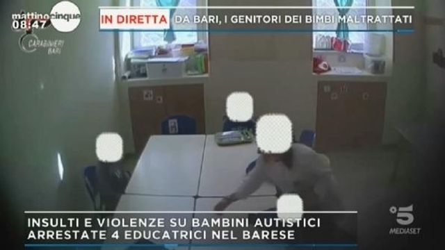 Immagini spaventose quelle che arrivano da Bari e in particolare dall’Istituto Sant’Agostino di Triggiano, struttura che dovrebbe prendersi cura dei bambini autistici nella provincia del capoluogo pugliese. Le telecamere installate dai Carabinieri hanno mostrato quattro educatrici che maltrattavano i minori affetti da autismo.