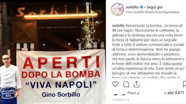 "Chi ha messo la bomba cambi la testa" - Sorbillo si è quindi rivolto a chi nei giorni scorsi ha piazzato la bomba: "Dico a chi ha fatto questo gesto vile di cambiare la propria testa, di non fermarsi ai pregiudizi e di pensare che non ce la si può fare. Io in questi anni ho creduto in tanti ragazzi della zona e di Forcella e di loro guardo più alla buona volontà che alla professionalità. I malviventi sono di questa zona e ciò mi rende ancora più sconcertato perché non riesco a comprendere come si possa fare male al proprio territorio dove abitano le reciproche famiglie. Queste persone invece di aiutare la rinascita di Napoli, la vogliono distruggere ma per fortuna è la mentalità di una minoranza perché i buoni sono il 98 per cento della popolazione".