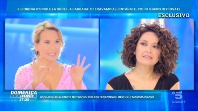 Barbara ed Eleonora D’Urso si ritrovano dopo anni di lontananza grazie alla “Dottoressa Giò”, di cui la sorella più piccola della conduttrice è protagonista per una puntata. A “Domenica Live” le due si sono commosse guardando alcuni videoclip relativi alla loro infanzia insieme. Figlie di due mamme diverse ma dello stesso padre, Barbara ed Eleonora sono cresciute giocando insieme e confidandosi. Hanno raccontato episodi divertenti del loro passato fino al 2014, quando Eleonora – attrice di teatro a Genova – si è trovata costretta a spalare il fango dell’alluvione di Genova nel Teatro Stabile dove lavorava. Insieme a lei molti volontari, “tra quelli c’era anche un angelo, quello che è diventato mio marito”. I due, racconta Eleonora, si sono innamorati subito e dopo 9 mesi è arrivata la proposta di matrimonio. “Sono stata fortunata. La vita e mio marito mi hanno fatto capire che nessuno si salva da solo e che l’amore fa sempre la sua parte”.