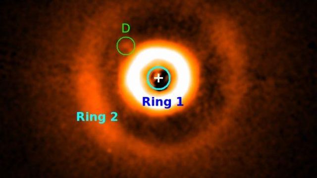 I pianeti si formano nei dischi di gas e polveri, durante lo stesso evento che porta alla formazione di una stella. Come avvenuto anche al Sistema Solare, circa 5 miliardi di anni fa. Nell'immagine catturata dal telescopio europeo Vlt sono ben visibili anelli di polvere esterni alla giovane stella HD169142. L'istantanea mostra anche un addensamento di polvere tra gli anelli, dovuto alla possibile presenza di una nube che circonda il pianeta.