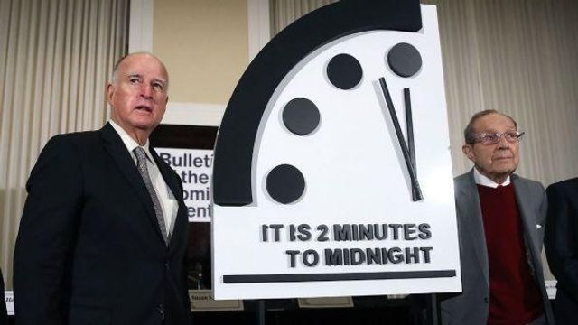Segnano due minuti alla mezzanotte le lancette dell'orologio dell'Apocalisse (metaforica), ideato nel 1945 dagli scienziati atomici americani per scandire il tempo che l'umanità ha davanti a sé per evitare una catastrofe dovuta alle armi nucleari o ai cambiamenti climatici. A partire dal 1947 questo orologio ideale è aggiornato ogni anno. Il 24 gennaio il consiglio di 20 esperti, chiamati a regolarlo, ha deliberato che all'umanità restano appena due minuti, proprio come nel 2018 e nel 1953.