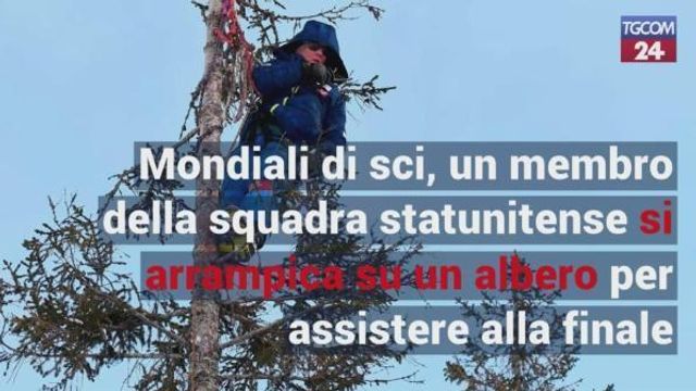 Un membro della squadra statunitense ha trovato un modo davvero alternativo per assistere al Super G ai Mondiali di Aare. L'uomo, assicurandosi a un grosso abete con delle cinghie di sicurezza, ha iniziato a scalare la pianta fino ad arrivare in cima: a quel punto si è fermato e ha iniziato a gustarsi lo spettacolo offerto dalle tante sciatrici in gara. Chissà se la tanta fatica fatta per salire fin lassù gli sarà valsa una visuale perfetta.