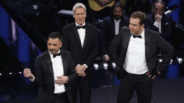 "Noi tutti - hanno detto i due comici nel loro intervento - invece di fare la parte degli ultrà, dovremmo solo tifare affinché si calmino le acque. E Baglioni lo diceva già tanti anni fa. Anche questi Cristi, caduti giù senza nome e senza croci, son stati marinai dietro gli occhiali storti e tristi Sulle barchette coi gusci delle noci". Una citazione della canzone "Uomini persi", contenuta nell'album "La vita è adesso"(1985).