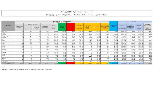 I numeri della pandemia I pazienti ricoverati terapia intensiva per il Covid sono 2.308, in calo di 60 unità rispetto a mercoledì nel saldo quotidiano tra entrate e uscite, mentre gli ingressi giornalieri sono stati 127 (ieri 142). Nei reparti ordinari sono invece ricoverate 16.867 persone, in calo di 653 unità rispetto a 24 ore fa. In totale i casi dall'inizio dell'epidemia sono 4.082.198, i morti 122.263. Gli attualmente positivi sono invece 402.802 (-4.327 rispetto a ieri), i guariti e dimessi 3.557.133 (+15.867). In isolamento domiciliare ci sono 383.627 persone (-3.614).