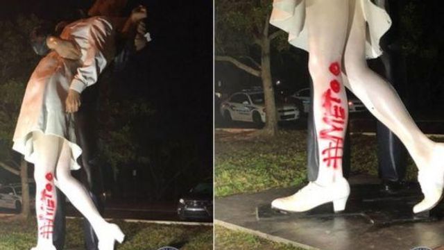 La statua dedicata al bacio di Times Square, che sorge a Sarasota, in Florida, è stata vandalizzata il giorno dopo la morte di George Mendonsa, identificato come il marinaio che, il 14 agosto 1945, baciò l'infermiera Greta Zimmer Friedman per celebrare la fine della Seconda Guerra mondiale. Sulla statua è comparso il graffito "#MeToo", motto delle campagne contro le molestie sessuali. La statua è stata subito ripulita.