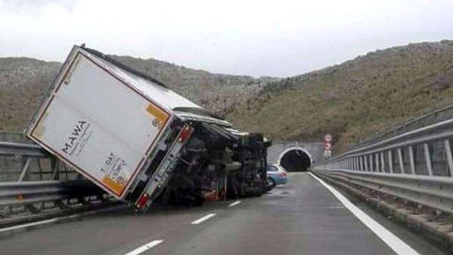 Il tratto tra Sibari e Morano dell'autostrada A2 del Mediterraneo è chiuso in entrambe le direzioni a causa del forte vento, che ha fatto ribaltare due mezzi pesanti. Uno dei due caminonisti coinvolti è stato estratto dal mezzo con lievi ferite, mentre l'altro è illeso. Il vento ha provocato anche il distacco di pezzi di guardarail e la caduta di alcuni pali della segnaletica.