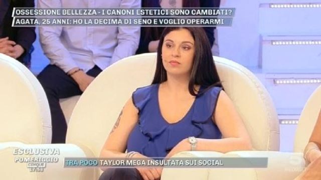 Agata ha 25 anni e ha sempre avuto un seno molto abbondante, una sesta, ma dopo la gravidanza ha raggiunto la decima. Una situazione insostenibile per il suo fisico: “Ho sempre mal di schiena, sono sempre curva, tendo a ingobbirmi e quindi ho sempre problemi di postura” spiega la ragazza ospite a “Pomeriggio Cinque”.