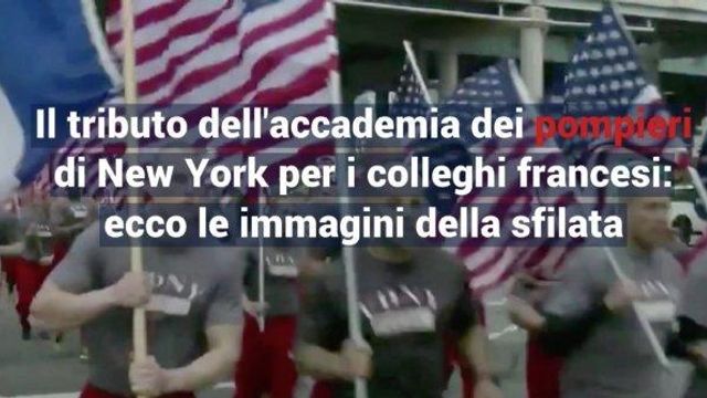 Bandiere francesi insieme a quelle americane per dire grazie. E' il tributo dei pompieri dell'accademia di New York per rendere omaggio ai colleghi parigini che, in 400, hanno domato le fiamme dell'incendio di Notre Dame. I vigili del fuoco americani hanno organizzato una sfilata nell'ambito della "Spirit Run", la corsa di fine corso prima della consegna dei diplomi.