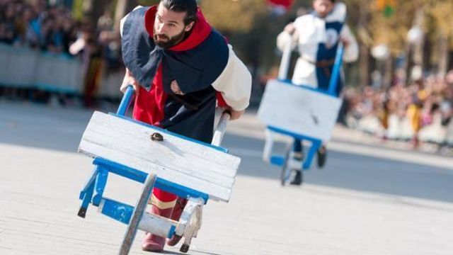 Non ci sono solo le principesse a baciare un ranocchio nella speranza di vederlo trasformato in principe: a Fermignano, in provincia di Pesaro e Urbino, la rana viene trattata come una vera regina, come passeggera di eccezione di un bizzarro veicolo simile a una carriola, in lizza per vincere un esilarante Palio, giunto quest’anno alla sua edizione numero 55. Il percorso è lungo 170 metri, nei quali l’animaletto verde è il passeggero che, con la sua docilità nel lasciarsi “scarrozzare” da un conduttore in abiti medievali, può condurre alla vittoria la sua contrada. L’appuntamento è da giovedì 25 a domenica 28 aprile. La festa prevede anche rievocazioni storiche, giochi medievali, sbandieratori e cene nelle taverne.