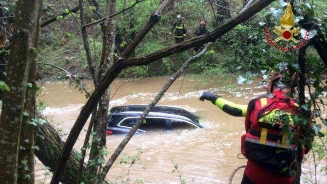 L'uomo ha avuto la prontezza di mettersi in salvo gridando alla moglie di fare altrettanto, ma lei non ci è riuscita. La vettura è stata trascinata a valle per almeno 300-350 metri dalla corrente ed è stata ritrovata senza la donna all'interno.