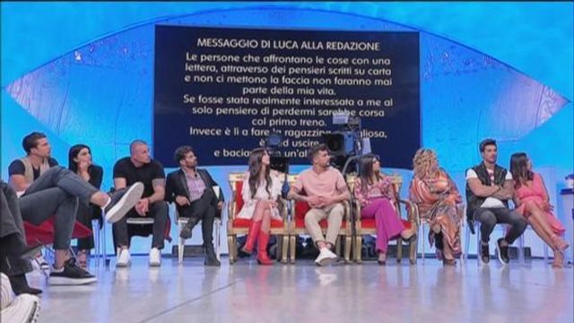 Angela, in precedenza, aveva chiesto alla redazione di convocare Luca per consegnargli una lettera. Non è stata disposta a raggiungere il corteggiatore nella sua città, Milano. Ma neppure lui, avvertito della questione, ha voluto presentarsi a Roma. "Non vedo perchè dovrei perdere una giornata, quando neppure lei è voluta venire qui", ha comunicato il corteggiatore alla redazione.