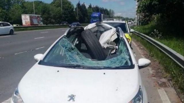 Che sia un miracolo o semplice fortuna, nessuno lo saprà mai. Quel che è certo è che un uomo è uscito quasi illeso dall'impatto con una ruota caduta a folle velocità dal rimorchio di un camion che si trovava nella corsia opposta dell'autostrada di Birmingham. Lo pneumatico, rimbalzando per strada, è finito sulla Peugeot del malcapitato e ha sradicato il tettuccio dell'automobile, ma non ha colpito il guidatore.