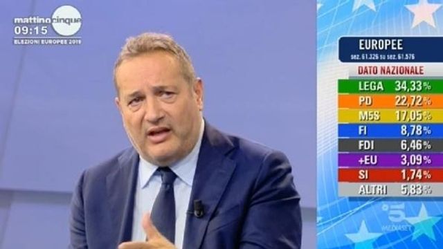 È tempo di bilanci e analisi, dopo le elezioni europee che hanno sancito la netta vittoria della Lega di Matteo Salvini, che ha superato quota 34% dei consensi degli elettori. A far da contraltare al successo del Carroccio, c’è proprio l’alleato di governo, il Movimento 5 Stelle, che si ritrova sotto il 20%, scavalcato dal Pd. Claudio Brachino, direttore di Videonews, commenta così a “Mattino Cinque” il successo di Matteo Salvini: “Ciò che sfugge a noi giornalisti, quello che non viene evidenziato dai sondaggi, è che tra lui e gli italiani si è creato un rapporto armonico cui non riusciamo a dare una spiegazione precisa”.
