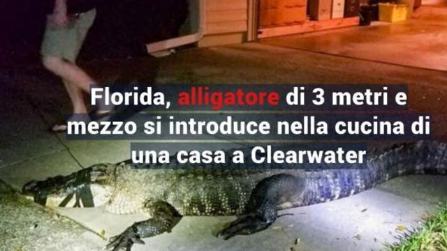 Non sarà stato piacevole per Mary Wischusen trovare un alligatore nella sua cucina. E' successo a Clearwater, in Florida dove il rettile, lungo tre metri e mezzo, si è introdotto nell'abitazione di una donna. L'animale pare sia entrato da una finestra posta al piano terra dello stabile. Il tutto durante la notte.