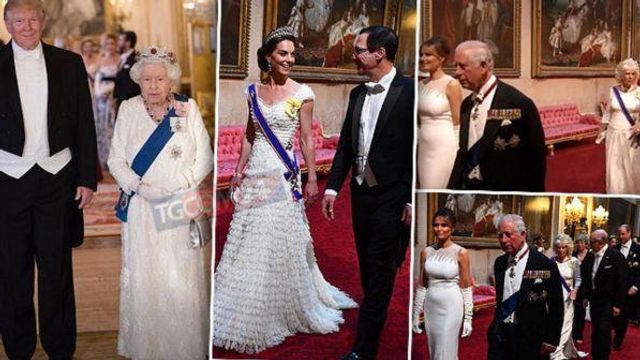 L'occasione perfetta per indossare i gioielli da fiaba. Kate Middlleton al banchetto di Stato con i Trump sfoggia la tiara preferita di Lady D e un lungo abito bianco da principessa. E' scintillante con il diadema che le illumina il viso e quel vestito costellato di ruches che sembrano piume. Ma brilla anche Melania, pure lei in bianco come la Regina Elisabetta e Camilla Parker Bowles. Assente Meghan Markle.