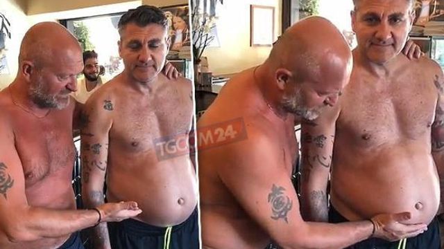 A torso nudo, Vieri scherza con Pucci mettendo in mostra un fisico non proprio atletico. Il comico lo prende in giro, e l'ex bomber se la ride di gusto. "Siamo in tre: io, Bobo e suo figlio che sta arrivando, un maschietto" e, considerando le dimensioni della pancia, aggiunge: "Aspettiamo un capriolo piccolino". "Come lo chiamiamo?" chiede poi l'attore. "Luigi", risponde prontamente l'altro, tra le risate generali.