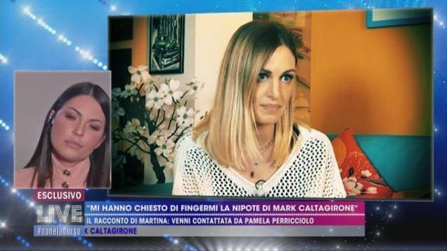 "Sono stata contattata da Pamela Perricciolo per partecipare a un reality". E' la dichiarazione di Martina la ragazza ingaggiata dalla manager della Aicos per fingere di essere la nipote di Mark Caltagirone. L'intervista, in esclusiva, è stata mandata in onda durante l'ultima puntata di "Live-Non è la d'Urso". La giovane donna ha spiegato come è stata spinta a fingere una parentela con il fidanzato inesistente di Pamela Prati.