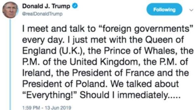 Questa volta il presidente Trump è caduto su un errore grammaticale. In un tweet, The Donald ha chiamato Carlo d'Inghilterra "Prince of Whales", cioè principe delle balene, piuttosto che "Prince of Wales" ovvero principe del Galles. Nonostante il tweet sia stato subito corretto, la gaffe non è passata inosservata e su Twitter i follower sono impazziti con meme e immagini che ritraggono l'erede al trono in mezzo ai cetacei. Non è poi la prima volta che Trump cade in questi errori. Di pochi giorni fa, il tweet in cui il presidente spiegava come la Luna fosse parte di Marte.