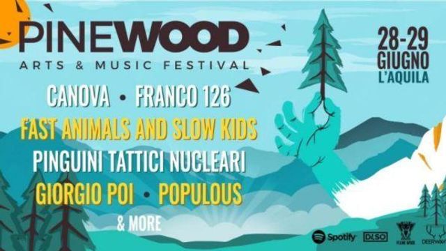 Pinewood Festival ritorna: e lo fa in una terza edizione destinata a confermarlo come uno degli eventi musicali più importanti del centro Italia. Dopo aver portato a L'Aquila artisti come Coma_Cose e Pop X, l’organizzazione del festival è lieta di annunciare i protagonisti della nuova edizione, che si terrà il 28 e 29 giugno: Canova, Fast Animals and Slow Kids, Franco126, Giorgio Poi, Pinguini Tattici Nucleari e Populous.