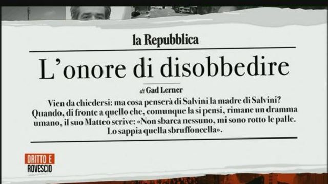 Politica a "Stasera Italia" Matteo Salvini a Gad Lerner: "Per mia madre non devo mollare" Il ministro dell’Interno a “Dritto e Rosvescio” replica alle provocazioni del giornalista che scrive: “Chi sa cosa pensa sua mamma della politica contro i migranti” 28 giu 2019 - 15:26 © da-video Continua a leggere su tgcom24 Dritto e Rovescio Sullo stesso tema "Non ho letto i suoi commenti" Sea Watch, il capitano: Salvini? Si metta in fila, prima 60 persone 28 giu 2019 14:01