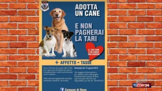 Meno tasse se adotti un animale. La campagna è stata lanciata dal Comune di Rose, nel Cosentino, ed è l'ultima di una lunga serie di iniziative firmate da amministrazioni locali per promuovere la presa in carico di cani e gatti da parte dei residenti. Il piccolo centro calabrese assicura uno sconto fino a 250 euro sulla tassa rifiuti per 4 anni a tutti quelli che preleveranno un cane o un gatto abbandonato dalle strutture convenzionate con il Comune. "Più affetto meno tasse" è lo slogan del progetto lanciato sui social, dove saranno condivise le foto dei cuccioli pronti per essere dati in affido. Chi è interessato può presentare la sua domanda già sulle pagine web per dare una casa a tanti animali finiti in canili o gattili.